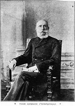 Panos Koronaios (Greek: Πάνος Κορωναίος) was a Hellenic Army officer who reached the rank of lieutenant general, and a prominent military leader in the overthrow of King Otto of Greece in 1862 and in the Cretan Revolt of 1866–1869.