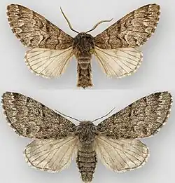 Panthea virginarius, the Cascades panthea, is a moth of the family Noctuidae. It is mainly found west and north of the Great Basin, from the coast of southern California northward to the Queen Charlotte Islands of British Columbia and the Alaskan Panhandle, eastward to central California, northern Nevada, Idaho, north-western Wyoming, western Montana, and south-western Alberta. A disjunct population is found in the Cypress Hills of Alberta and Saskatchewan.