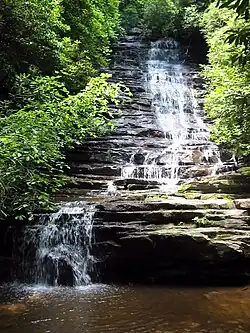 Panther Falls is the first of two waterfalls on the Angel Falls Trail in Rabun County, Georgia, United States. The second waterfall on the trail is Angel Falls. The falls are each about 50 feet (15 m) in height on Joe Branch Creek. The trail begins at the Rabun Beach Camping Area #2 and is a moderately strenuous 0.5 mile hike to Panther Falls with Angel Falls an additional 0.5 mile.[1]