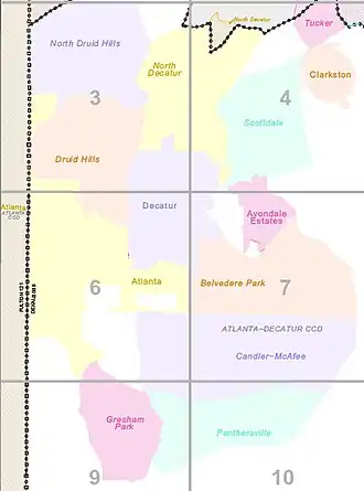 - ^ "2010 CENSUS - CENSUS BLOCK MAP: Panthersville CDP, GA" (PDF). U.S. Census Bureau. Retrieved May 7, 2020. - Compare with school addresses and boundary maps.