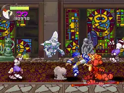 Panzer Bandit is a side-scrolling beat 'em up game that uses the same engine used in Mad Stalker: Full Metal Forth, also for the PlayStation. There is a total of 12 characters, including the four story characters and the eight unlockable bosses.[3] The game is controlled with two attack buttons (strong and weak) and the directional pad for moving left, right, crouching, and jumping.[4] Shoulder buttons can also be used to change between foreground and background and can be used to activate the character's special attack. An unusual aspect of the game is that if the player stands still during an attack, it is considered a guard. Other features include a combo counter and a guided elemental attack which launches an enemy.