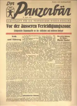 Der Panzerbär—Kampfblatt für die Verteidiger Gross-Berlins ("The Armored Bear—Battle Sheet for the Defenders of Greater Berlin") was a German daily tabloid newspaper printed in the final days of the European theater of World War II in Berlin.
