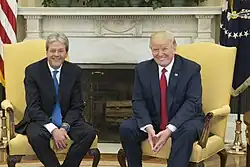- ^ "Trump accoglie il premier Gentiloni alla Casa Bianca: "Italia partner chiave contro terrore"" [Trump invited Prime Minister Gentiloni to the White House: "Italy key partner against terror"]. la Repubblica (in Italian). 20 April 2017. Retrieved 14 April 2019.