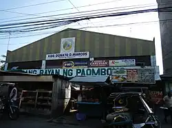 Paombong ([pɐʔomˈbɔŋ] or [ˈpoːmbɔŋ]), officially the Municipality of Paombong (Tagalog: Bayan ng Paombong), is a municipality in the province of Bulacan, Philippines. According to the 2020 census, it has a population of 55,696 people.[6]