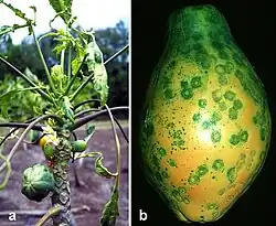 - ^ Tripathi, S.; Suzuki, J. N. Y.; Ferreira, S. A.; Gonsalves, D. (2008). "Papaya ringspot virus-P: Characteristics, pathogenicity, sequence variability and control". Molecular Plant Pathology. 9 (3): 269–280. doi:10.1111/j.1364-3703.2008.00467.x. PMC 6640413. PMID 18705869.