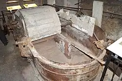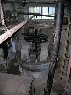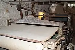 The entire manufacturing process at the time of plant shutdown can still be understood based on the historical machinery and equipment preserved. There are both pre-industrial facilities such as waterwheel drive, dry floors and a wooden screw press, as well as industrial machinery. In the authentically preserved production rooms, the production process, working life and workplace situation in the paper mill are vividly informed. Furthermore, the museum presentation includes the environment of the people who worked and lived in the mill. The living rooms are kept in their original state during the shutdown. Documentation exhibitions on the different paper raw materials, watermarks and preindustrial hand-paper production complete the exhibition.[6]