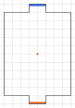 The game's pitch is drawn as a rectangle on a grid, with small extended rectangles in the center of each of the two shortest sides to represent the two goalposts. The grid can be of any size, although both sides should be an even number of squares to allow a center point for kickoff. The goal areas are typically 2 × 1 squares in size.