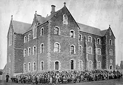 Parade College was founded by four Christian Brothers in January 1871. They had taught for two years in a small school behind St Francis’ Church in Lonsdale Street before moving into the bluestone building in Victoria Parade. Hence the name Parade College. About one hundred boys enrolled on the first day and this number grew steadily over the years until it became necessary in 1953 to move the junior classes to a site newly acquired by the Old Paradians Association at Alphington. In 1968 further expansion was necessary and the college moved to a site of 80 acres on Plenty Road, Bundoora.[1]