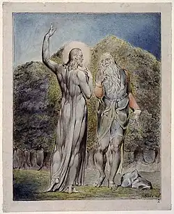 In Heaven, God tells the angels of Satan's arrogance, and He is praised.