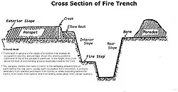 A parados is a bank of earth built behind a trench or military emplacement to protect soldiers from attack from the rear or from enfiladement.[1]