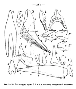 - ^ a b c d e f g Karpinsky, Alexander (1922). "Замечания о зубных сегмента х Edestidae и об и х ориентировке (Notes on the dental segments of Edestidae and their orientation)". Bulletin de l'Académie des Sciences de Russie (Bulletin of the Russian Academy of Sciences) (in Russian): 379–388 – via Biodiversity Heritage Library.