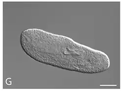 Paramecium biaurelia is a species of unicellular ciliates under the genus Paramecium, and one of the cryptic species of Paramecium aurelia.[2] It is a free-living protist in water bodies and harbours several different bacteria as endosymbionts.[3][4][5] Although the bacteria are parasites by definition, they also exhibit mutual relationship with the protist by providing survival benefits.[6] It is used as an organism model in the study of the effects of gravitational forces in different environments.[7][8][9]