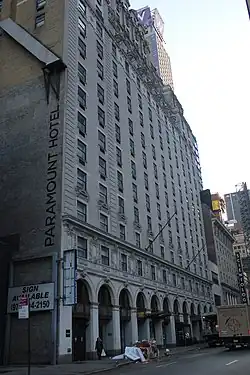 The surrounding area is part of Manhattan's Theater District and contains many Broadway theaters.[2][5] Prior to the Paramount Hotel's development in the 1920s, the site contained several low-rise buildings.[5][6]