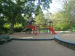 In 1968, the children's play area was installed to the south-east of the landscape park. It currently contains several slides and swings highlighted by vast circular stone surrounds. A lawn located next to the playground was authorized to the public at the end of the 20th century, unlike the other lawns, which were still prohibited. A diversion of certain paths was carried out in 2010 around the cedar near the menagerie, in order to preserve the roots. A monument in homage to the Breton poet Glenmor decorates the junction between the English garden, L'Enfer and the bowling alley on 27 June 1998.[25]