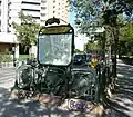 - Entourage Guimard: Square-Victoria-OACI station on the Montreal Metro in Canada has a genuine Guimard entrance made from parts of demolished Paris entrances (with map holder and "Métropolitain" sign and holder reproduced from the original molds). It was installed in 1967.[28] During restoration in 2001–2002, it was found to have the last examples of the original glass light globes, which in Paris had been replaced with plastic for safety; one was returned to the RATP and the other placed on display in the Montreal Museum of Fine Arts.[29]