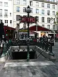 - ^ Édicule has a broader meaning in French than Latin Aedicula; it is sometimes used for all the Guimard Métro entrances, not only for those with roofs.
