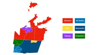 - ^ If only including cities fully within the parish, Parham would be the largest city. The part of All Saints in Saint Peter has a larger population than Parham. All Saints extends across three parishes.