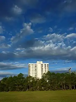 Park Beach is home to the largest shopping centre between Newcastle and the Gold Coast, Park Beach Plaza.[9] Other important places in the area include Park Beach Homebase,[10] Northside Shopping Centre, the Park Beach Holiday Park,[11] Park Beach Bowling Club,[12] York Street Playing Fields,[13] Pacific Towers,[14] the Coffs Harbour Surf Life Saving Club[15] and the Hoey Moey.[16] The Coffs Harbour Food and Wine Festival was formerly held annually at the southern end of Park Beach (Park Beach Reserve), on the edge of Coffs Creek.[5][17]