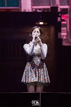 In March 2014, she made a surprise appearance in Hong Dae Kwang's "Thank You My Love" music video.[7] Before her debut, she gained attention for having lost 32 kg since her Superstar K2 days.[8][9]