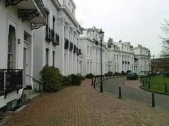 Park Crescent is a Grade II* listed terrace of 14 Georgian houses in Worthing, England, designed in 1829 by Amon Henry Wilds, son of the architect Amon Wilds and constructed between 1831 and 1833. AH Wilds had previously worked on other large projects including the Kemp Town estate in nearby Brighton.
