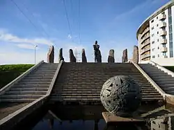 Park West is home to Europe's tallest wind and water mobile sculpture, Wave by Angela Conner.[3] It is a 39.3 m (129 ft) tall sculpture made of polystyrene covered with layers of carbon resin.[4] It is fixed into a 7.6 m (25 ft) pit filed with 9.5 t (9,500 kg) of lead.[5]