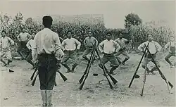 By June 1909, and now recognized as one of the leaders of the Korean-American community, Park established a military school in Kearney, Nebraska.[6] Park was a firm believer in military action against Japan in order to achieve an independent Korea, and such action clearly required trained fighters.[2] With his school, he aimed to provide young Korean-Americans with military drills and training for the anticipated clash with Japan. History, English, Korean and even agriculture were also taught to students.[7]
