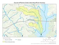 Parkers Creek is a 6.21 mi (9.99 km) long 2nd order tributary to the New Hope River in North Carolina. Parkers Creek joins the New Hope River within the B. Everett Jordan Lake Reservoir.