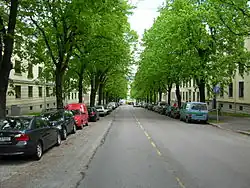 Among streets with trees the Bygdø allé, laid out around 1890 soon got a reputation for its chestnuts. The trees grew, and towering close to the buildings by the street, the common view was that the solution used for Gyldenløves street, where there is an alley in the center of the street, was a better one. In connection with the Jubilee exhibition in 1914 the street Kirkeveien alongside the Frogner Park was widened and got trees in the centre strip.