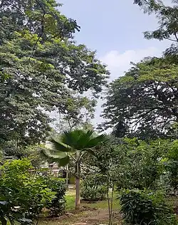 As of 2019, there are 632 parks in Chennai City, including 142 parks in the north zone, 224 in the central zone, and 266 in the south zone. They range in size from 700 square metres to 5,000 square metres. A couple of the parks, including the Anna Nagar Tower Park, are spread across acres.[2] In 2018, the city's green cover was estimated to be 14.9 percent, up from an estimated 4.5 percent in 2011.[3] The per capita green cover of the city has been estimated at 8.5 square meters, as against the World Health Organization recommendation of 9 square meters of green cover per capita in cities.[4] The city lost around 100,000 trees in December 2016 because of Cyclone Vardah. As of 2018, the city's tree cover is estimated to be around 64.06 sq km. This is just over 15 percent of the entire city. The most dominant species of trees in the city are copper pod, Indian beech, neem, gulmohar, raintree, and tropical almond. The overall extent of open space in the city is 34.58 km2. In all, the city has 121 species of trees belonging to 94 genera and 42 families. Teynampet zone remains the most diverse with 68 species, and Manali zone with just 38 species is the least. With 51 parks, Adyar remains the zone with the highest number of parks in the city, and Tiruvottiyur zone scores the least with only 4 parks.[1] The share of Chennai's greenspace is dominated by the Guindy National Park, with an area of 2.71 sq km, which covers a vast area south of the Adyar River.