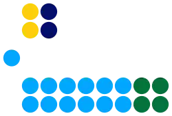 The Parliament of Curaçao[2] (Papiamento: Parlamento di Kòrsou) on the island of Curaçao, in the Dutch Caribbean region, consists of 21 members, each elected for a four-year term in a general election. The first Parliament was installed on 10 October 2010, following the dissolution of the Netherlands Antilles, and consisted of the members of the island council elected on 27 August 2010.