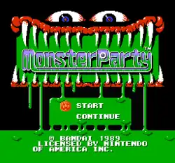 Monster Party is a platform game for the NES, released in North America in 1989 by Bandai. It was and remains a relatively obscure game for the console, having a small following among some players. The game both pays homage to and parodies horror pop culture, alternately featuring enemies and locations based on classic horror icons, and parodic reinterpretations.