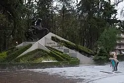 The corner of Insurgentes Avenue and Porfirio Díaz Avenue, which is also part of the park, has been a busy rush-hour crossing since the Mexico City Metrobús opened in 2006, and includes a fountain and a statue of Vicente Guerrero on a horse, that was a gift from the State of Guerrero to Mexico City. This corner has, since the 1970s, been a meeting point for weekly Sunday bike rides. The AC Bicycletero Movement meets under the statue of the hero of Independence of Mexico, and under the name of Biciperros still perform Sunday walks that are free to all.[3]
