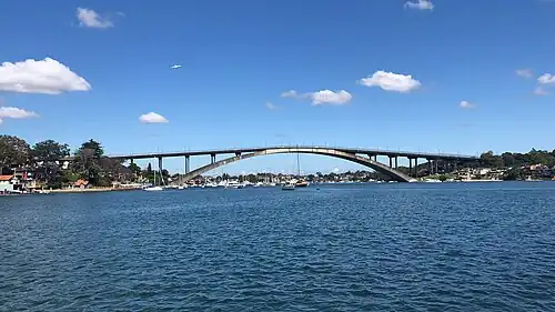 The Parramatta River is an intermediate tide-dominated, drowned valley estuary[2] located in Sydney, New South Wales, Australia. With an average depth of 5.1 metres (17 ft),[3] the Parramatta River is the main tributary of Sydney Harbour, a branch of Port Jackson. Secondary tributaries include the smaller Lane Cove and Duck rivers.