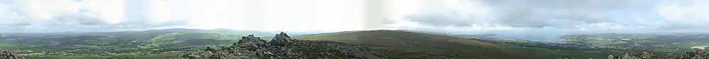 Panoramic image from Carn Ingli with Newport bay in the far right distance