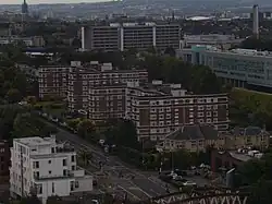 View looking west over Great Western Road and Gartnavel General Hospital within Partick East/Kelvindale ward | |