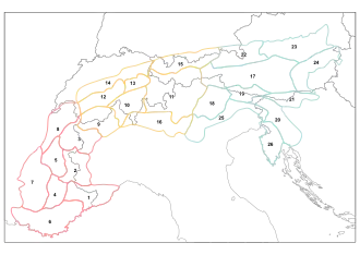 | 16 | Lombard Prealps | Prealpi Lombarde | – | Lombardische Voralpen, Lombardische Alpen |