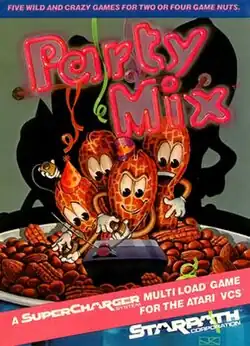 Party Mix is a 1983 party video game developed and published by Starpath for the Atari 2600. It was designed to be used with the Supercharger add-on, which gave the Atari 2600 the ability to multi-load games and is required for the game to function.