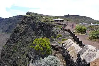 Pas de Bellecombe-Jacob is a mountain pass and vista point overlooking Enclos Fouqué, the last caldera formed by Piton de la Fournaise, the active volcano on the eastern side of Réunion island (a French department) in the Indian Ocean.
