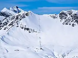 The slope has moguls throughout. It starts in a narrow pass on the mountain top with an inclication of 40 degrees.[1] In winters with heavy snowfall, the moguls at the top can grow to enormous dimensions — the size of a small car — because of the heavy turns people take to compensate for the inclination and narrow slope.