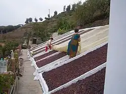 Raisins are obtained by the natural dehydration of grapes of the Vitis vinifera variety, until they reach a state that allows for their preservation. The designation of origin covers raisins produced in the Axarquía region and the western coast subregion, an area comprising the municipalities of Manilva, Casares, and Estepona.[3] Malaga raisins are made from Moscatel grapes: En cuanto a las variedades de vides plantadas en la zona de producción, en el siglo XIX, eran muy diversas. En la actualidad, la variedad que predomina es la Moscatel. Esta variedad, procedente de África, ha sido utilizada desde la invasión musulmana para vinificación, uva de mesa y pasificación. Su dispersión ha sido muy grande a lo largo del tiempo lo que explica la existencia de gran cantidad de sinónimos para esta variedad como son: Moscatel de Alejandría, Moscatel gordo, Moscatel de Chipiona, Moscatel gorrón, Moscatel de grano gordo, Moscatel de España, Moscatel de Málaga, Moscatel real, Moscatel romano, Moscatel de Valencia y Moscatelón.[note 1][4]