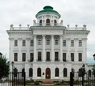 The Pashkov House (Russian: Пашко́в дом) is a neoclassical mansion that stands on a hill overlooking the western wall of the Moscow Kremlin, near the crossing of the Mokhovaya and Vozdvizhenka streets. Its design has been attributed to Vasily Bazhenov. It used to be home to the Rumyantsev Museum—Moscow's first public museum—in the 19th century. The palace's current owner is the Russian State Library.