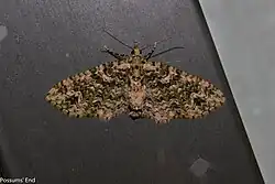 From late December to mid January adults lay their oval, flattened eggs, usually singly, on the leaves of their host species.[11] These eggs hatch after about fifteen days.[11] They turn a dark colour in the last few days of maturing.[11] The larvae of this species tend to be present in January.[8] They are known to rest with their body held in a twisted shape and when walking have been observed to sway from side to side.[8] This species pupates in a loose cocoon on the ground.[8] There appears to be only one brood per year for this species.[11] The adults of this species are on the wing all year round but more commonly from September until May.[12] They are attracted to light.[8] They have been observed resting during the day on tree trunks where their appearance resembles moss making the species extremely difficult to find.[8]