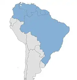 As displayed in the map, this species is native to the northern region of South America, including: Venezuela, Guyana, French Guiana, Suriname, and Brazil.[1] More specifically, Passiflora glandulosa in Brazil is located in its northern, northeast, and central-west regions, which include the following states:[4]