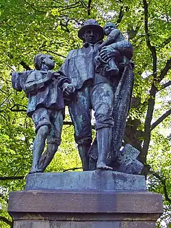 Due to the work's popularity, the subject of Passing Mother's Grave has also inspired the design of a statue in honor of Israëls—The Jozef Israëls Monument—in his hometown of Groningen, which depicts the figures from this painting cast in bronze.[16] The Dutch painter Vincent van Gogh counted the painting among his favorites. He was fascinated by the painting and compared it with the work of French painter Eugène Delacroix, saying the painting was "Delacroix-like and superb" in its technique".[17][18]