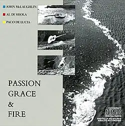 Passion, Grace & Fire is the second album by John McLaughlin, Al Di Meola and Paco de Lucía released in 1983. Unlike their first album Friday Night in San Francisco, this album consists entirely of studio recordings.
