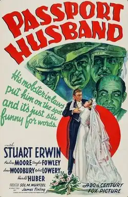 Passport Husband is a 1938 American comedy film directed by James Tinling and written by Karen DeWolf and Robert Chapin. The film stars Stuart Erwin, Pauline Moore, Douglas Fowley, Joan Woodbury, Robert Lowery and Harold Huber. The film was released on July 15, 1938, by 20th Century Fox.[1][2][3]