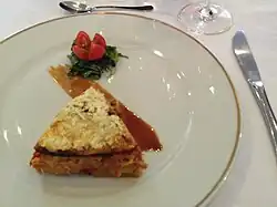 The dish is traditional food in the South American country of Venezuela, and a very common dish in Eastern coastal areas. Its popularity may be attributed to how it is both sweet and salty, its famous gourmet flavoring.[1][2][3] The pie looks, and is constructed, like a lasagna.[4]