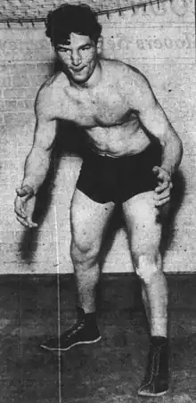 ![]() Filley as a wrestler, 1939 | |