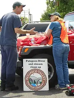 Environmental nonprofit organizations, such as The Friends of Patapsco Valley & Heritage Greenway, Inc. (PHG), lead clean-up efforts by the residents of surrounding communities. From 2006 to 2012, PHG volunteers participated in 183 stream clean-ups, removing 264 tons of trash from the streams of the Patapsco Valley watershed.[20]