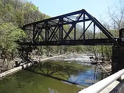 Patterson Viaduct | Grist Mill Trail | Ilchester | 2006 | Former rail bridge opened 1829, destroyed 1868, and rebuilt 1869; new footbridge built on abutments of prior rail bridge |
